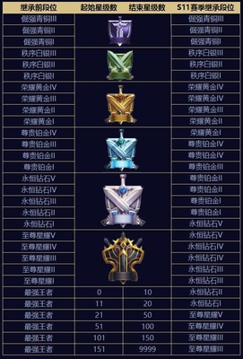 最后,上图就是这次赛季段位继承方案。其实,每到赛季末最伤心的就是看到自己辛辛苦苦打上去的段位掉下去,不过很久之前段位继承就没有任何的变化,所有如果你下一个赛季有计划的玩家可以根据上面段位冲一下分。