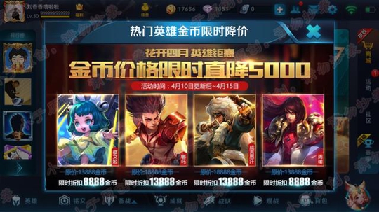 首先昨天就给大家介绍过的活动,4位英雄直降5000金币,反正这个活动一般都是出现在新英雄登场的前一星期,大家也一直在吐槽这都是套路,而且玩家今天也反应,这四位英雄哪个是热门了?