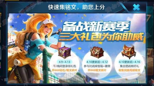 另外玩家每天不同的时段登陆游戏都会有宝箱,其中能开出不少的铭文碎片、钻石,一直说没有铭文的玩家可以明天领一下宝箱,积少成多~
