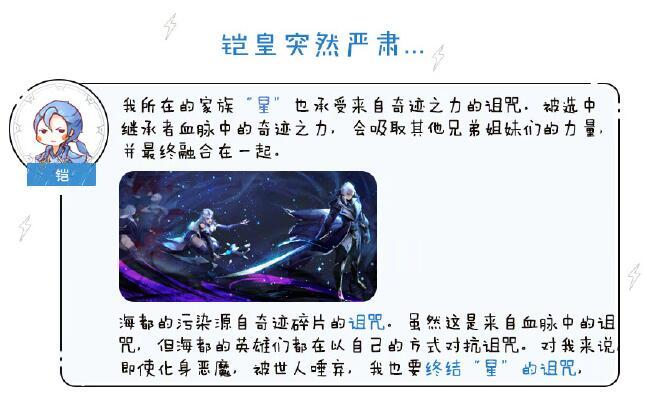 而这个污染的诅咒,就和铠这个家族新有关系了。联想到官方这次不顾很多人的反对,强行重做了露娜,重做后的露娜很多技能都和星之标记有关系,看来这次官方对露娜的重做就是为了让她更加贴合这个背景啊,可以说露娜的这次重做就是因为被诅咒了,所以天美才会强行来这招。你们觉得是不是这样的呢?反正对喜爱露娜的玩家来说,确实是一个悲剧。