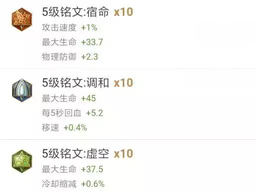 虚空:大幅增加亚瑟的生命值,配合大招可以降低亚瑟在团战中受到的伤害,新版亚瑟非常依赖技能,冷却缩减属性很重要。