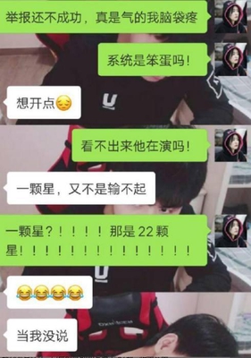 有位小伙伴向自己朋友哭诉在打排位时候,遇到了演员队友,然后结局很不幸,输掉了比赛,气的这位小伙伴把演员队友举报了。可是举报不仅不成功,再一看自己排位失败的惩罚,竟是连掉22颗星,瞬间觉得有点难以接受,惊呼难道自己遇到BUG了?本来朋友安慰小伙伴想开点,一颗星又不是输不起。不曾想是22颗,也不知道怎么继续安慰了,只能说天美大大给开了个不怎么好笑的玩笑。