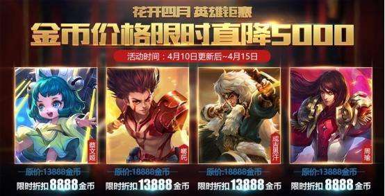 热门英雄蔡文姬、周瑜、哪吒、成吉思汗限时金币折扣,金币价格直降5000,机会难得,召唤师们千万不要错过~