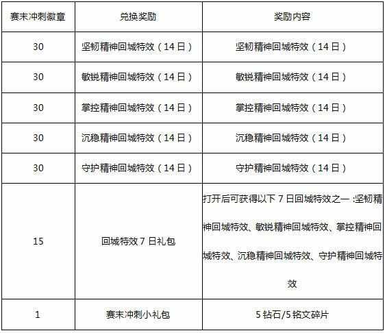 段位达到钻石:赛末冲刺徽章*3+钻石段位铭文碎片礼包*1(打开可得100或120铭文碎片)