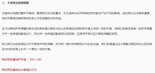 前几天,体验服中调整野怪护甲,想要借此来减缓打野英雄的发育速度,不过今天体验服又重新做了调整,护甲回调,统一提升所有野怪15%的生命值。