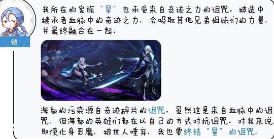 但是事实真的是这样吗?其实铠皇才是真正的大暖男,他一直在保护着他的小妹露娜,因为魔道“星”家族是被诅咒的家族,只要是被选中的继承者,那继承者血脉中的奇迹之力会吸取自己兄弟姐妹的力量。