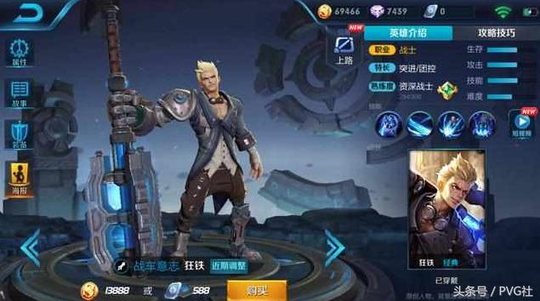 从英雄的技能上来看虽然没有什么太过于亮眼的地方,但是从官方设定的属性来看,这个英雄的四维都十分均衡,所以基本上抗逆性以及可操作性会好很多,因此容错率也会十分靠谱。狂铁这个英雄的机制基本上是通过技能继续能量值,然后能量会强化技能,然后消耗能量,有点类似老夫子的技能机制。