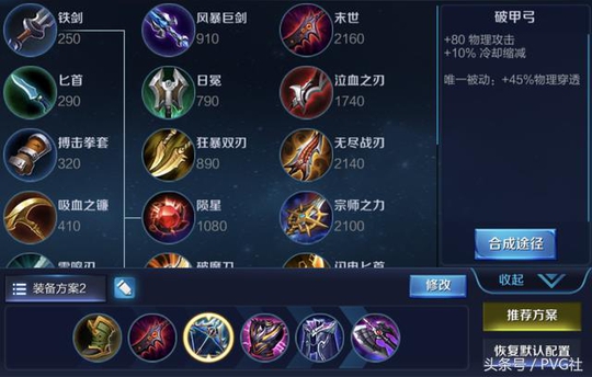 中期的话可以考虑出轻语以及暴烈甲,不但技能冷却减少能得到一定的提升外,鏖战也能建立更大的优势。最后就是做出魔女和暗影斧了,基本上这一套出来,最后把破甲弓升级成最新的进化版破甲弓就算是打后期六神装了。