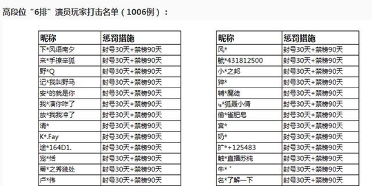针对本次违规行为,官方总共封掉1006个账号,全部处以封号三十天和禁榜九十天的惩罚。这些演员只存在于高分段,因为高分段上星比较困难,所以才诞生了演员,而在低分段就不存在这种情况,但会存在大量代打行为。