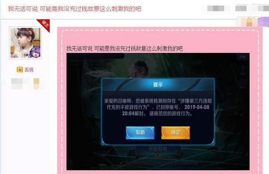 估计玩家都猜到这封系统邮件大概是什么内容,那就是封号邮件,里面内容写着检测到玩家存在涉嫌第三方违规代充的不良游戏行为,做封停账号处理,而且封号时间长达一年,看到这里玩家心情都不好了,都是自己打的排位赛,哪里来的第三方代练,后面玩家因为太气愤,就把这个事情放到了论坛上,让各位玩家评理,还说到可能因为玩家玩了这么多久都没充过一分钱才封号的.