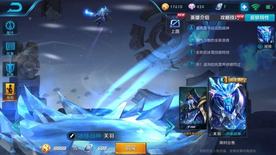 第三名冰封战神,现在有百分之八十的玩家后悔当初没有买冰封战神,冰封战神的出场关羽手拿青龙偃月刀从天而降,在加上关二爷的血战到底,简直完美!