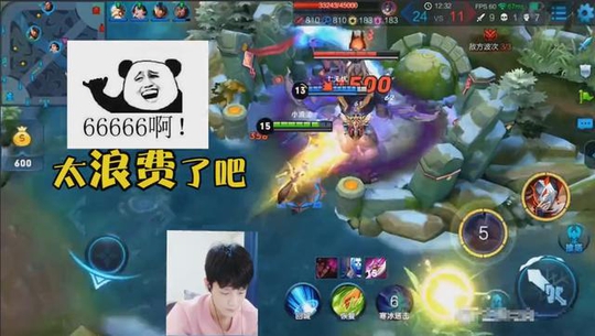小浪浪在这局游戏中,玩起了阿轲打野。作为一个刺客,小浪浪在前期做到了所有能做到的事情。9个人头的阿轲只要敌人把后背露出来,阿轲就会像死神一般出现在身后。游戏进行到中后期,僵持不下的情况蓝色方决定抱团把小龙打了。