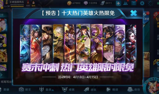 对了13号还会开启十大热门英雄限免的活动,里面有美貌与智慧并存的大乔,有爱发大小姐脾气的孙尚香还有一切造物主女娲等等供各位召唤师使用,当然除了排位其他模式貌似都可以玩。