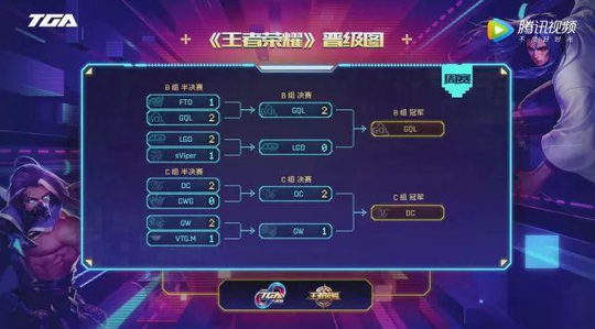 4月10日19:00,2018 TGA大奖赛《王者荣耀》项目风云再起,参赛战队分成了两组分别展开角逐,其中在C组的比赛中,DC以2:1取得决赛的胜利,成为4月第二周C组冠军。