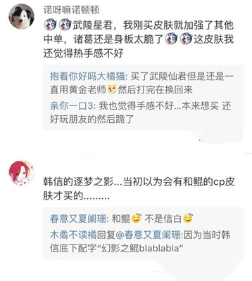 还有一些土豪玩家表示想要退诸葛亮的武陵仙君,因为这款皮肤手感真的不好,并且这皮肤太贵了,还有些玩家甚至想要退了韩信的逐梦之影。