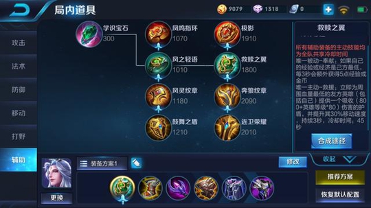 我们再来说说出装,狄仁杰的出装除了出门买个小打野刀之外(小野刀必出),技能带惩击,其他的跟玩射手的时候出装情况是一样的(毕竟也是用来打伤害的),而明世隐出门装就是学识宝珠(先合成风之轻语),鞋子出疾步之靴 (1技能链到狄仁杰会给他增加移速),鞋子出了之后出一个进化水晶(升级回血),之后就看阵容出防御装备啦…