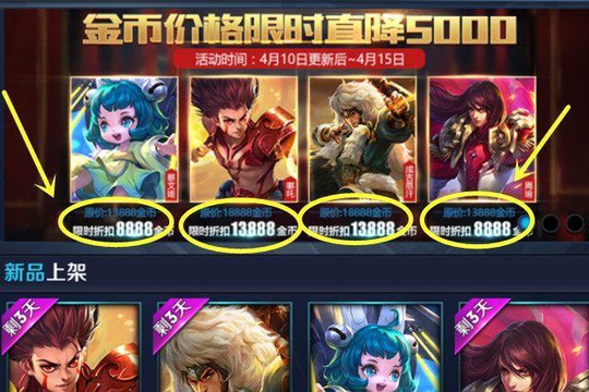 如上图,蔡文姬、哪吒、成吉思汗和周瑜这4个英雄直接降价5000金币,这简直就是赤裸裸的诱惑啊,很多小伙伴一不留神估计就把仅存不多的金币给花出去了,不知道有没有小伙伴们中招呢?