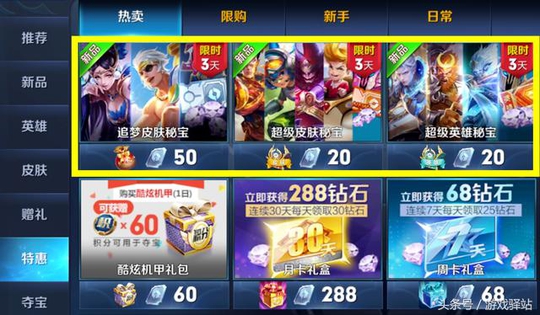 王者荣耀正式服于今日开启了多个活动,包含了赛末冲刺十位热门英雄限免三天、氪金得皮肤碎片和荣耀积分、回城徽章开启兑换和三大秘宝限时上架,那么本期秘宝中的英雄/皮肤都有哪些呢?一起来看看吧!
