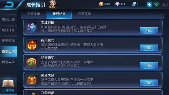 进入游戏完成每日的游戏活动,参加游戏副本都会给大家带来铭文碎片,武道大会和六国远征。