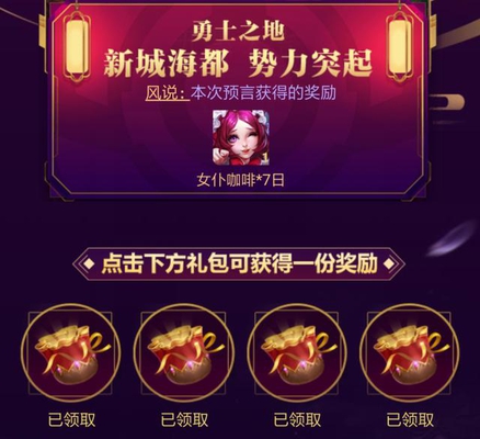 王者荣耀正式服在4月13下午已开启预言赠礼的限时活动,这个活动依然采取逐区开放的形式,后面的大区将在稍后开启。本次活动十分简单,收集道具即可开启预言,抽取永久史诗皮肤和永久英雄。