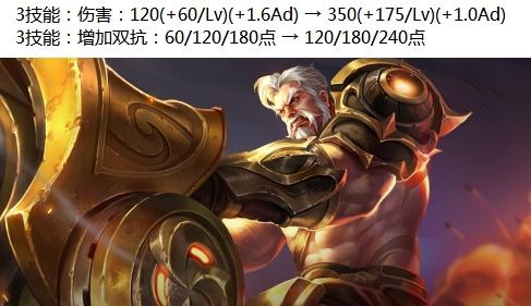 黄忠增强:大招前期伤害大幅提升,1级大招将提高237点伤害,3级大招的伤害和调整前基本不变。黄忠3级大招双抗提升至240点,大幅增加了其生存能力。体验服黄忠的大招伤害巨高,一般刺客很难近身,本次增强有点难以理解,看来黄忠是想上ban位了。