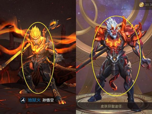 外服版不仅有孙悟空这个英雄,就连猴子的皮肤地狱火也有,不过名字有点变化。叫炼狱修罗!跟国服的对比起来差别太多了,国服猴子地狱火打从美化之后特效堪称完美,而且造型也特别好看。然而外服的地狱火皮肤看起来暗淡无光,没有任何特效,简直就是天差地别。