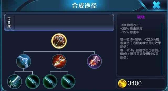 新武器破晓:单价3400,50攻击,35攻速,15暴击,射手再加45的穿透效果,100点物理额外伤害。真是两个字变态级别!比破军贵性价比就低了,不过奠定了射手的后期地位!