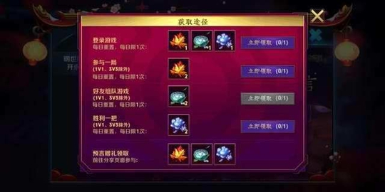 参与活动其实非常简单,跟之前的活动几乎一样,只是这次天美换了一个页面,用比较形象的内容表达出来,让玩家可以一目了然。大家看上图的活动内容,都是非常容易的。