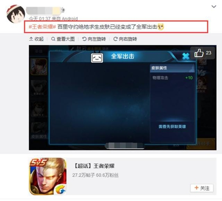 在今年的2月9号,王者荣耀官方就发布了一则消息,内容上是关于旗下另外一款新游全军出击,表示在当天这款游戏要正式与大家见面,其内容和玩法上与PC端基本上相差无几,也弥补了很多玩家无法用电脑玩的遗憾,不过在这条微博中还透漏了不少讯息,尤其是图中出现了百里守约,这让很多玩家不得不想天美会不会出一款关于绝地求生的联动皮肤。
