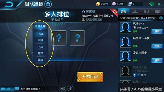 ①玩家在选择多人排位时,可以预先选择这局比赛你想打的位置。
