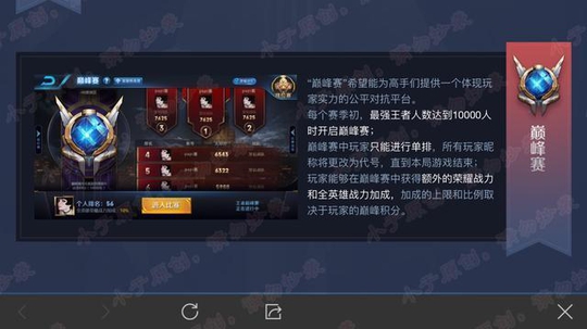 第四个是同样是全新的模式--巅峰赛也将会上线;之前王者官方封了一大批的荣耀级、国服级的玩家,主要就是因为“伪大神”刷荣耀积分导致,而这个巅峰赛就是为了避免大神刷战力(不过小于觉得可以设置上了王者以后就只能单排呢?反正小于一直都是单排上王者~)