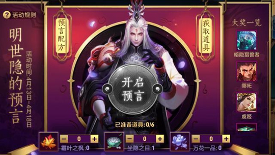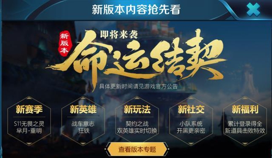 新版本命名:命运结契,也是开黑节的特殊版本,正式服也开启版本相关的预言活动。这个活动规则比较奇葩,接到很多玩家询问,哪种配比可以得到皮肤?官方何时如此大方送史诗皮肤了?其实这个活动并非必得,而是一定配比,得到某些东西的概率相对更高。其实说到底,这还是一个看脸看运气的活动,能抽到暗隐猎兽者的玩家,绝对是欧皇级别的存在。