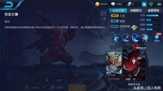 白起的被动技能非常重要,当他使用技能或者普通攻击时,都可以减少目标的伤害输出,这个技能是一个百分比效果,目标伤害越高,减少的就越多,对于敌方后排英雄,可以达到最大的限制作用,后期白起可以轻松承担前排作用,被动起着至关重要的作用。白起的一技能可以进行小范围的AOE攻击,并且自身收到伤害时,也可以触发一次AOE攻击,并且命中英雄时,可以额外恢复2%的已损失生命值,非常优秀的恢复技能,并且白起的一技能根据生命值增加伤害,所以白起只需要堆防御装,就可以提升自己的伤害能力。