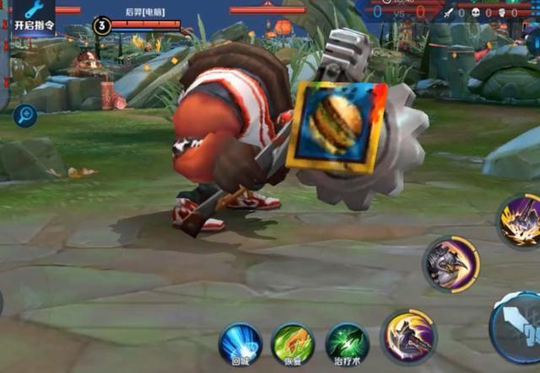 在侧面看的时候我们会看到牛魔斧头上有一个贴着的汉堡,怎么就不直接把斧头做出汉堡呢,贴上去是个什么情况,想想兔女郎花木兰的胡萝卜做武器都那么强,牛魔用个汉堡做武器也没什么不可以的。