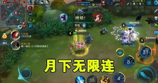 露娜是王者荣耀里面数一数二难操作的英雄,而她的月下无限连更是让人摸都摸不到,先利用1技能在小兵和英雄之间打出标记,然后再使用大招衔接于英雄和小兵之间,伤害打出来的同时,还能把人秀到眼花缭乱。一个玩的好的露娜,位移永远用不完。不会玩的露娜,大招永远都处于冷却状态。