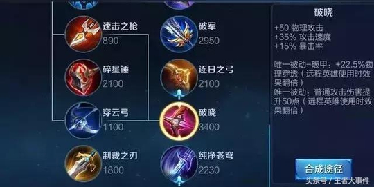 另外是新增的两件射手装备 穿云弓和破晓 。破晓从功能上来看,是射手的强有力武器,但是它也是史上最贵装备。所以说,好的东西是不会让你这么轻易得到的。