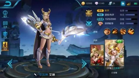 还有就是内测英雄艾琳的皮肤女武神,艾琳拥有的人就不多,更何况艾琳的皮肤呢,拥有这款皮肤那你的账号价值能提升非常多的。