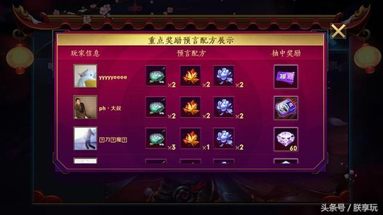 此次活动从13日开始到18日截止,玩家可通过收集道具自由搭配得到不同的奖励。此活动道具有三种,分别是霜叶之枫、坐隐之目和万花一品。这些道具随机搭配,不同的搭配可以得到不同的奖励。