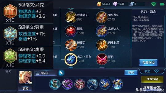 经过笔者在体验服的排位经历,发现这个英雄不管是走暴击流还是百穿,都是能够发挥出很大作用的,尤其是强化后的二技能,这一秒眩晕不管是击杀敌方脆皮还是保护己方英雄,都能起到良好的作用!这一次就为大家推荐以上这套出装,在后期装备成型后配合队友突进敌方团队,秒杀输出人物还是很简单的事情,并且复活甲或者名刀都拥有很强的生存能力!铭文则推荐异变+狩猎+鹰眼,当然想走暴击的话就完全不同了!