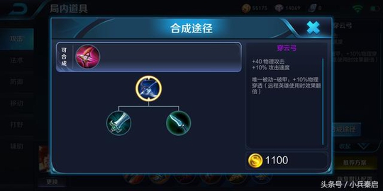 其中穿云弓是破晓的合成小件,而破晓属于大后期的专属装备。