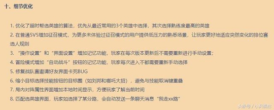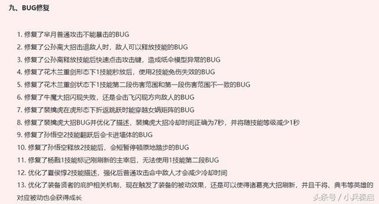 每次大版本更新都会修复许多之前的BUG,比如大家一直讨论的苏烈有时候明明有被动,却不能复活,或者有时候某些大招和技能放不出来等等。这些其实都属于特定条件下的BUG。