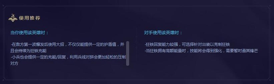 不过官方给的一些小技巧还是很有用的。比如关于能量的问题,一是可以用大招来提供连续的充能,二是可以打小兵积攒能量。针对狂铁的话要把他想成是一个回复型英雄,确实他一技能的回复能力实在是太强大了。而狂铁的能量在没有战斗的时候会慢慢减少。所以有时候看见他能量是满的就可以拖一拖。