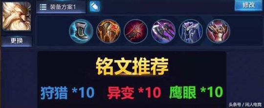 老夫子拥有大量的真实伤害跟伤害加成技能,出装在保证攻速的情况下,优先选择防御装备最佳。前期选择抵抗之靴+红莲斗篷(火甲),上单英雄前期收益最高的两件装备,清线快,支援速度快。中期选择末世跟暗影战斧,末世是一件非常贴合老夫子技能的装备,攻速跟吸血对于普攻流的英雄非常适用。后期选择魔女斗篷跟反伤甲,补充老夫子后期伤害承担能力,毕竟老夫子团战需要利用大招的控制,跟被动的伤害加成击杀后排英雄。铭文选择狩猎+异变+鹰眼。