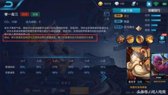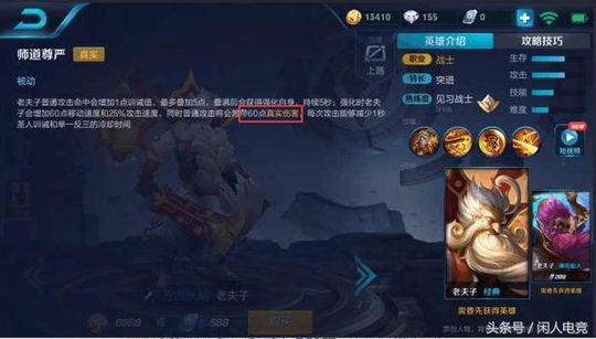 hello大家好,我是闲人,最新鲜的游戏八卦了解一下。 当前版本的王者荣耀,依旧是坦克英雄跟战士英雄的天下,在高端局中,尤为明显。一场对局中,除了中规中矩的法师位置以外,剩下八个位置,坦克跟战士占九成以上。通过数据也明显看的出,没有射手存在的局,胜率会明显高很多。想在赛季末上分的召唤师,练好一手战士英雄,非常有帮助。老夫子作为高端局中的热门战士,就是一个非常不错的选择,下面小编就全面的跟大家介绍一下这个英雄。