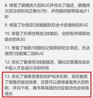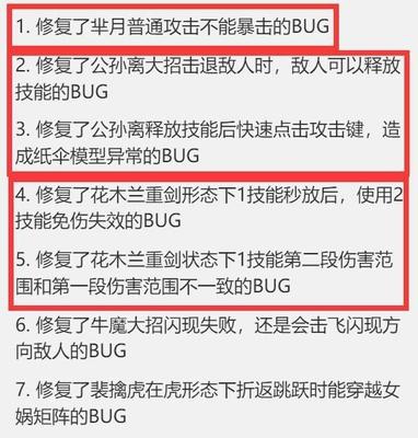 以上,是官方修复的BUG汇总,有很多项修复是非常影响英雄的强度的。小客栈关注的几点已经用红框标注了,大家可以看看。当然,也有一些BUG修复也会影响英雄强度,比如说牛魔大招闪现修复其实稍微降低了牛魔的强度,而修复了孙悟空的2技能释放后的原地踏步则是增强了孙悟空的强度,但以上并不算是常态,影响不是很大,就不详说了。详细说一下红框标注中的BUG修复。