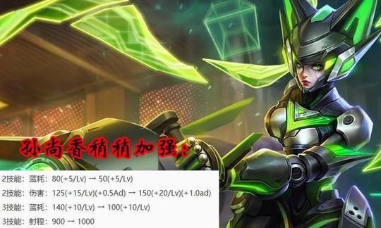正式服已经更新了一下孙尚香的强度,但好像并没有看到实际上的效果,孙尚香依然胜率垫底!这一次,孙尚香再度加强,但是加强幅度依然不是很大,小客栈这两天有时间的时候也会使用孙尚香来打上几局比赛,小客栈认为后期孙尚香的伤害是可以的,但是前期孙尚香的攻击有点儿不足,发育时间又有点儿长,不知道这次更新,孙尚香能否再度成为射手一姐。