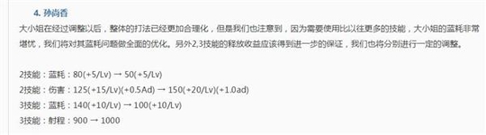 新版本中,大小姐孙尚香、鲁班七号、黄忠都有了大幅增强,蓝耗降低、冷却缩减,爆发力提升。