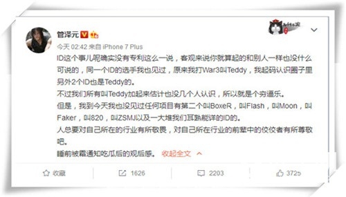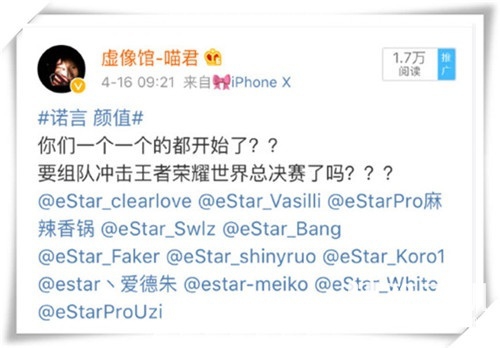 今日,虽然骂战结束,英雄联盟圈却掀起了一场诺言ID保卫战,不仅反驳KPL粉丝,还在联合申请诺言这个超话,虽然ID没有专利的说法,起码要在微博上把厂长诺言ID的正统地位占据。