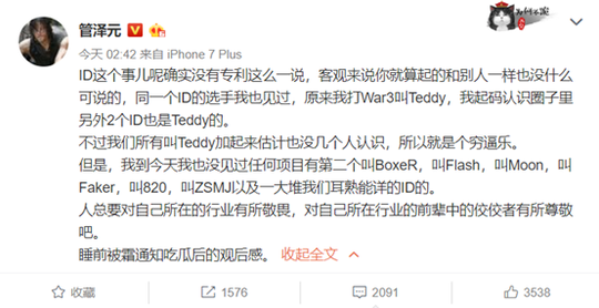 LOL解说管泽元也针对这次事件在微博发表了看法