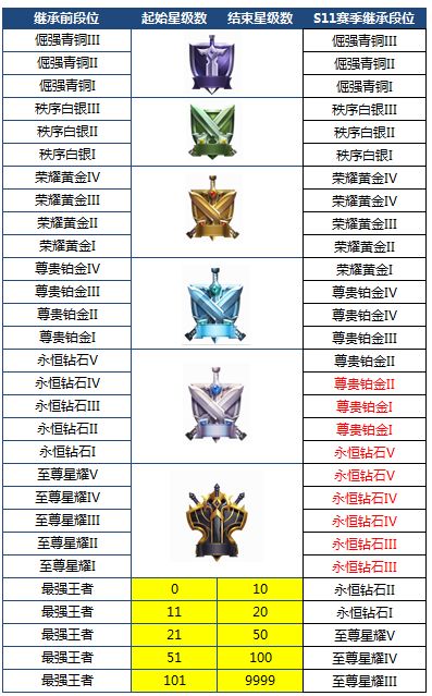 首先是这个段位继承表,这次段位继承,和上次基本上没有什么太大的差别。反正最开始的那段时间肯定钻石段位的人就开始虎起来了,如果对自己没有信心的小伙伴还是等一段时间再去参加排位吧。